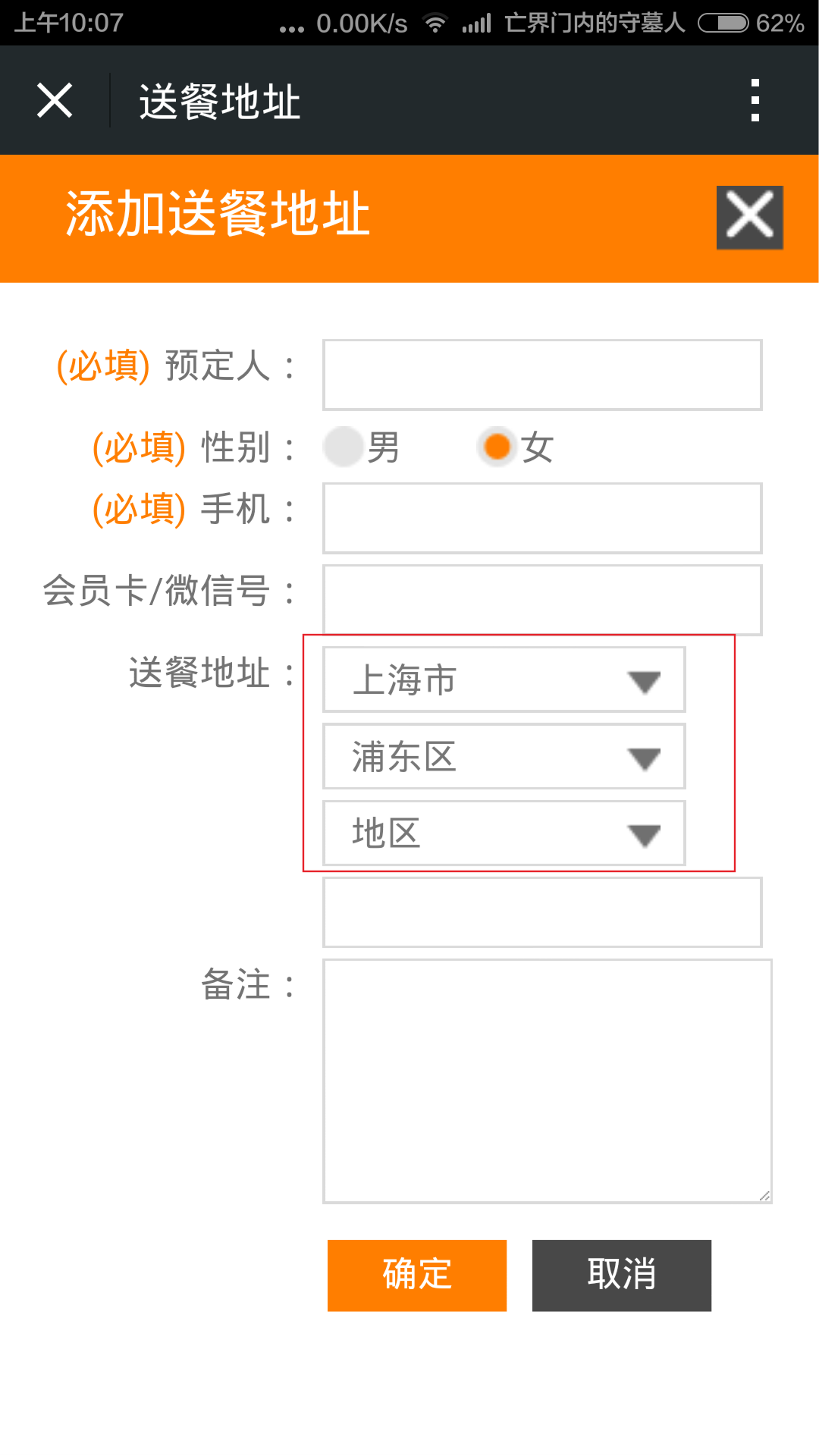 修改本人收貨地址為自定義地區(qū)