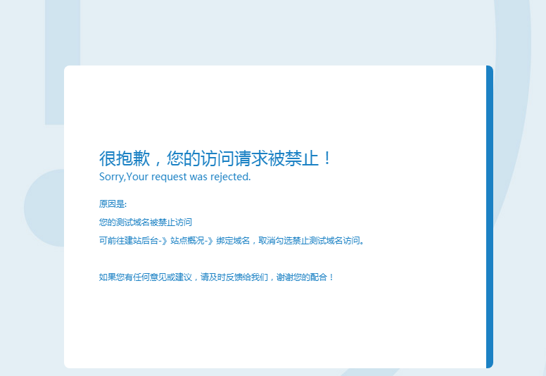在網(wǎng)站后臺-》點擊綁定域名。然后勾選禁用測試域名即可