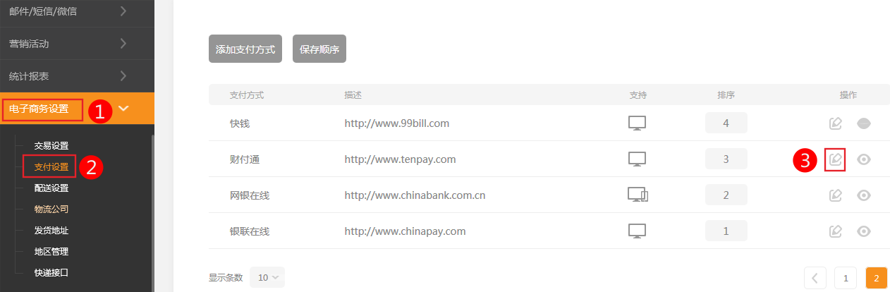 2、依次點(diǎn)擊 電子商務(wù)設(shè)置-》支付設(shè)置-》財付通