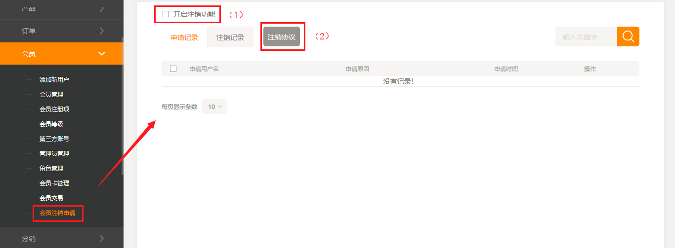 1.在建站后臺(tái),“會(huì)員”中新增了“會(huì)員注銷申請(qǐng)”菜單。(1)勾選后,會(huì)員中心會(huì)顯示出申請(qǐng)注銷按鈕。(2)可以設(shè)置注銷協(xié)議,用戶需要同意才能提交申請(qǐng),如圖所示:2.用戶可以在個(gè)人中心-賬戶設(shè)置中提交注銷申請(qǐng)。(不同版本的示意圖不一一展示了)3.在后臺(tái)可以查看注銷申請(qǐng)的基本信息。同意注銷后,該用戶的賬號(hào)即刪除(同意注銷操作不可撤銷)。可以在注銷記錄中查看已注銷的信息。