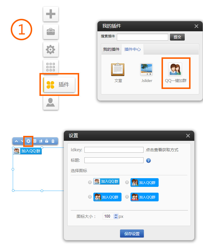 PC和手機(jī)版QQ一鍵加群(適用版本基礎(chǔ)版、標(biāo)準(zhǔn)版、營(yíng)銷(xiāo)版) 點(diǎn)擊后可直接申請(qǐng)加入設(shè)置好的QQ群 支持QQ加群圖標(biāo)選擇,文字樣式和圖標(biāo)大小設(shè)定