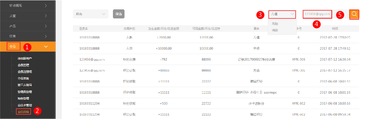 ?1,會員-會員交易,選擇充值或者消費,輸入會員登錄名或卡號,點擊搜索按鈕2,選擇充值積分還是余額,輸入充值數(shù)值,點擊充值按鈕3,充值成功的記錄如下圖所示,【會員消費】與【會員充值】同理4,會員-會員管理中,點擊會員登錄名下方的【充值】和【消費】按鈕,會跳轉(zhuǎn)到該會員的充值或者消費界面。2019.8.16建站后臺會員交易新增導(dǎo)出數(shù)據(jù)功能(營銷版)在后臺,點擊“會員”-“會員交易”選擇需要導(dǎo)出的數(shù)據(jù),然后點擊“導(dǎo)出數(shù)據(jù)”即可生成Excle文件,如圖所示:
