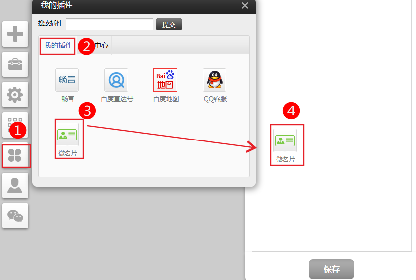 手機版插件(適用版本手機營銷版)微名片功能只有認證過的服務(wù)號才能正常使用現(xiàn)在就去申請認證(在微信自定義菜單中添加帶有微名片插件的頁面)使用此插件可以在微信里分享自己的電子名片可自動獲取微信用戶頭像,設(shè)置名片顯示樣式1.依次點擊插件-》我的插件-》選中“微名片”插件拖拽到您需要的位置。(如果“我的插件”中沒有,請到插件中心選啟用)2.點擊設(shè)置-》可以設(shè)置微名片的首頁,和創(chuàng)建名片界面的樣式。3、設(shè)置分享鏈接還是名片內(nèi)容。1.使用此功能需要在網(wǎng)站注冊成為會員2.必須關(guān)注公眾號后才能使用微名片功能。關(guān)注鏈接的作用,