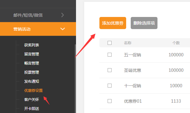 一.新增優(yōu)惠券插件(營銷版以及小程序營銷版) ①.后臺---營銷活動---優(yōu)惠券設(shè)置里添加新的優(yōu)惠券 ②.在插件--營銷里面,選擇優(yōu)惠券插件 ③.點擊設(shè)置,數(shù)據(jù)來源可以選擇指定的優(yōu)惠券,并且可以設(shè)置優(yōu)惠券插件的樣式 ④.前臺預覽如下: ⑤.手機版功能同上,不在贅述 Faq 優(yōu)惠劵 如果優(yōu)惠劵設(shè)置可領(lǐng)取次數(shù)為多次,則客戶可以連續(xù)領(lǐng)取多張。