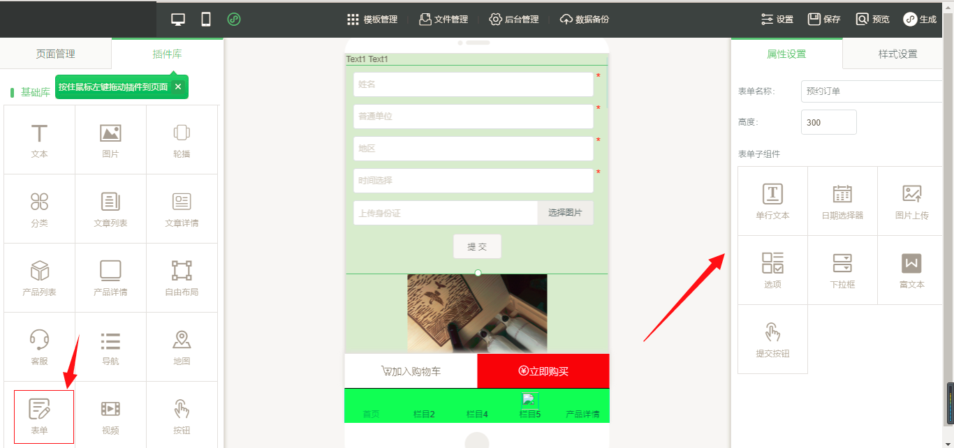 一.小程序短信新增表單模板(營銷版)1.在小程序編輯器中,拖入表單插件,選擇所需要的表單子組件,拖入到頁面中,選擇完畢之后,點擊“保存”,如圖所示:2.點擊后臺管理,找到“短信”-“小程序表單”點擊之后,點擊“操作”勾選需要顯示的表單內(nèi)容,這里需要特別注意的是:“添加標量標簽”中,$value1~$value5指的是需要和前臺編輯器中表單項所對應的位置要一致,比如前臺的“姓名”在編輯器中式第一個,那在這里就選擇$value1即可,點擊“確定”,如圖所示:3.點擊“短信發(fā)送設(shè)置”,輸入所有信息之后點擊保存,然后將“自動發(fā)送”改