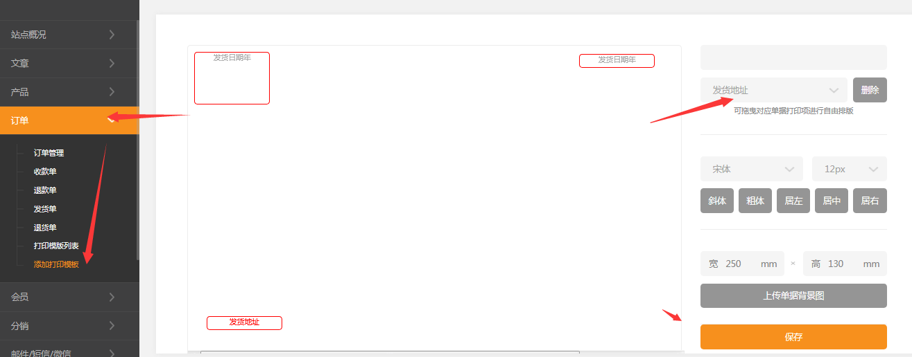 依次點擊訂單-》添加打印模板-》添加所需要的模板即可常見問題為什么有些訂單可以打印出貨單有些不行?答:需要已經(jīng)發(fā)貨了的訂單才能打印出貨單收款單、退款單、發(fā)貨單、退貨單項目是固定的不能配置