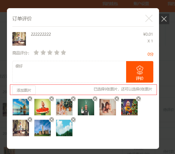 一.產(chǎn)品評論新增曬圖功能(PC、手機營銷版、小程序營銷版)1.以pc版為例,在前端“會員中心”-“待評價”中點擊需要評價的產(chǎn)品,在文本框的下方會有曬圖功能,傳入圖片后點擊“評價”即可(注:僅支持9張圖片),在后臺“產(chǎn)品評價”中,將該評論點擊顯示后,在前臺中該產(chǎn)品評論中會顯示該評論,如圖所示:2.手機與小程序操作方式與PC版一致,這里不做贅述。(注:小程序中需要在微信公眾平臺的設(shè)置中綁定服務器域名),如圖所示: