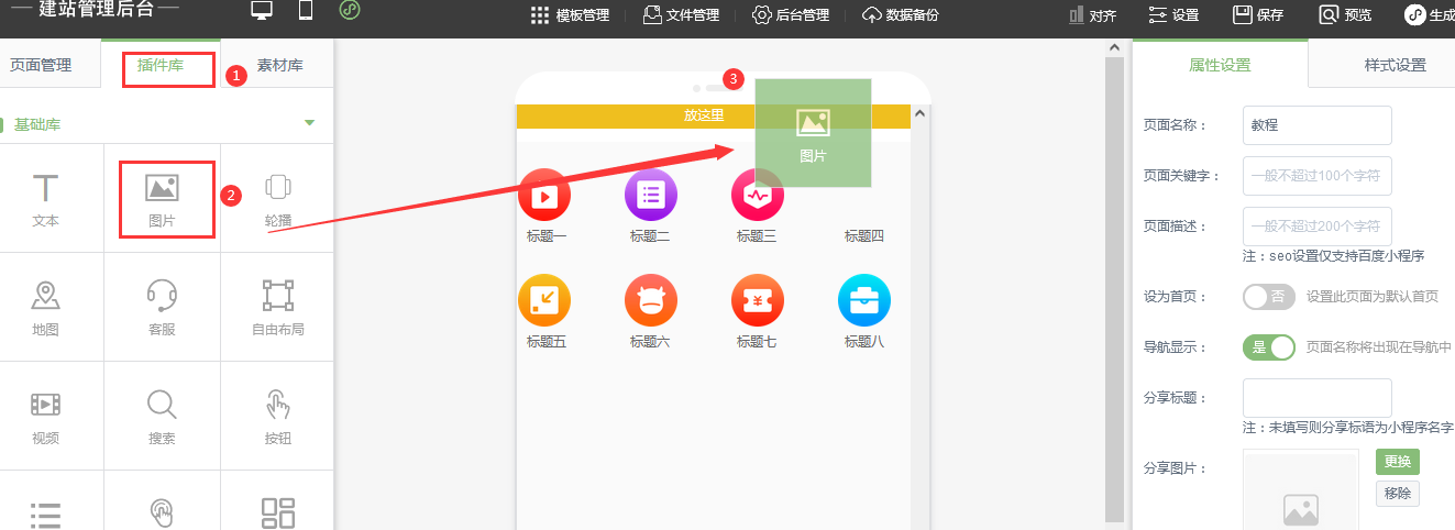 在頁面屬性中設(shè)置分享標(biāo)題和分享圖片如下圖:如果不設(shè)置則分享圖片為當(dāng)前頁面部份截圖。