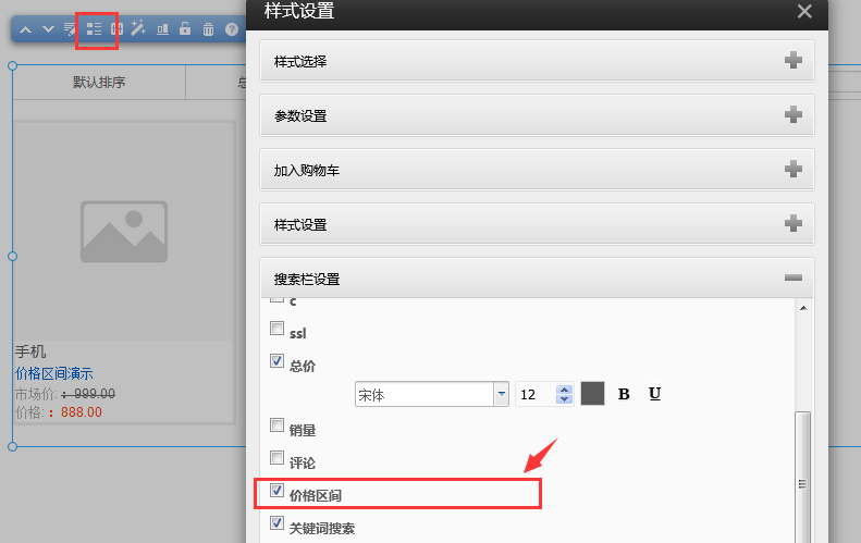 價(jià)格區(qū)間開啟在產(chǎn)品列表樣式設(shè)置--》搜索欄設(shè)置中開啟“價(jià)格區(qū)間”即可在產(chǎn)品列表默認(rèn)展示如下如果要通過價(jià)格篩選產(chǎn)品如下圖所示位置錄入價(jià)格范圍后點(diǎn)擊確定可以篩選出價(jià)格區(qū)間內(nèi)的產(chǎn)品