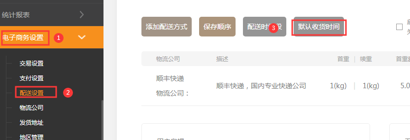 1.依次點(diǎn)擊電子商務(wù)設(shè)置-配送設(shè)置-》默認(rèn)收貨時間(營銷版)默認(rèn)自動收貨時間,僅針對買家長時間未確認(rèn)收貨使用.為空則無最長可以配置30天
