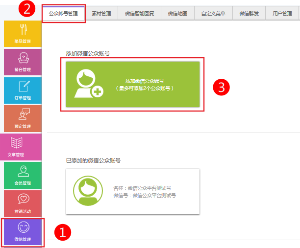微信公眾平臺注冊請參考http://kf.qq.com/faq/120911VrYVrA1403202uIzUV.html1、依次點擊微信管理-》公眾帳號管理-》添加微信公眾帳號2、在設置公眾帳號設置中獲取到帳號名稱、及微信號。3、在開發(fā)者中心獲取Appid他Appsecret4、點擊https://mp.weixin.qq.com進入微信公眾平臺,選擇【開發(fā)者中心】->選擇啟用,選擇【修改配置】5、在微信管理-》公眾帳號管理-》添加微信公眾帳號中綁定微信公眾號.(注意:最多可綁定兩個帳號,同時只能用一個)(注意:必須在操作第6步保存后再回到微信公眾平臺中提交)綁定URL和TOKEN